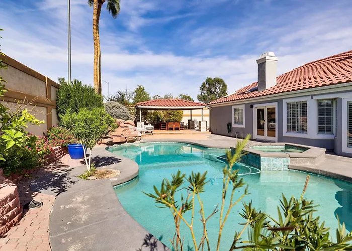 Situé au quartier "Summerlin", 4,300-Sq-Ft Villa In West Vegas With Pool And Games! Las Vegas est à à environ 10 minutes en voiture de Sahara West Library and Fine Arts Museum et offre un jacuzzi et un bain chaud. Vous pourrez faire du ping-pong dans cette villa de Las Vegas, situé à côté du Battle Blast Laser Tag.